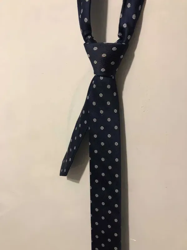 Классический галстук с мелким принтом, держит узел, без дефектов.