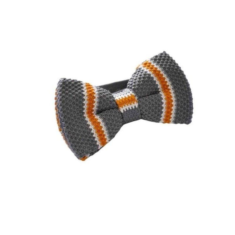 Галстук бабочка вязаная серая в желтую-белую полоску tk-22-18