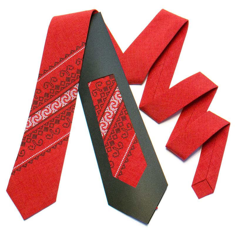 Вишита краватка №735 – це унікальний подарунок для боса, друга чи колеги по роботі. Вишита краватка – це необхідний аксесуар для ділової людини. Матеріал краватки – костюмна тканина червоного кольору, класичного крою. Довжина виробу – 145 см. Усі вишиті краватки нашого виробництва – запаковані в ексклюзивну упаковку ручної роботи. Чорна фірмова упаковка виготовлена з дизайнерського картону, добре тримає форму виробу при транспортуванні. Тому не важливо, хочете ви зробити оригінальний фольковий подарунок босу, другу чи самому собі – вишита краватка є правильним і вдалим варіантом. Виготовлено в Україні!