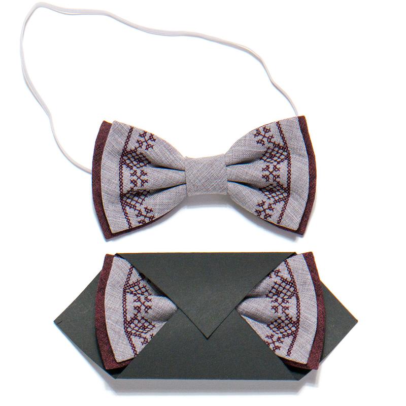 Дитячий вишитий метелик №729. Метелик виготовлений із комбінованої костюмної тканини бордового кольору. Має дуже простий спосіб кріплення на резинці, що запросто підійде для найменшеньких. Дитячі вишиті метелики нашого виробництва традиційно запаковані в дизайнерську упаковку ручної роботи. Виготовлено в Україні!