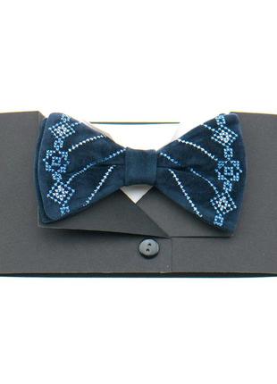 Вишитий метелик №810 виготовлений з замінника замші темно-синього кольору. Такий метелик – це вишуканий аксесуар, тому буде оригінальним подарунком для близьких або знайомих на будь-яке свято. Усі метелики нашого виробництва – запаковані в ексклюзивну фірмову упаковку ручної роботи, виготовлену з чорного дизайнерського картону. Виготовлено в Україні!