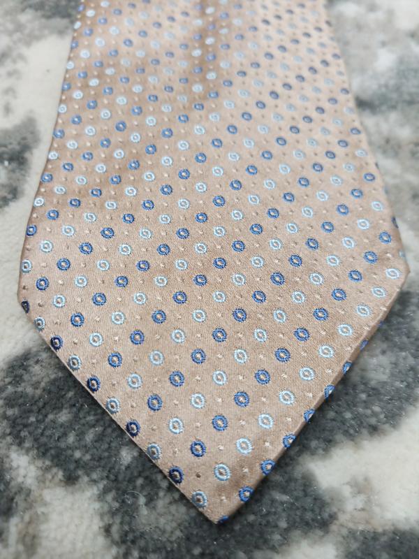 Краватка Harrods фуляр, тканина заявлена шовк, має фактуру, гладкість середня,бархатистість мінімальна ширина 8см, довжина 146см, зібраний з 3х частин,закріпки є,краю петлі заховані всередину, конструктивно 3х додавань,стан відмінний