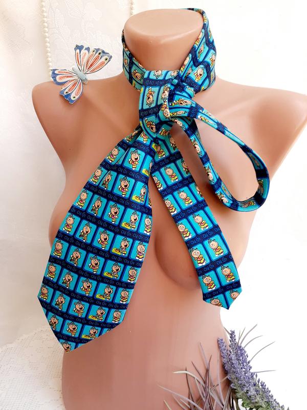 Що може бути більш чоловіче в одязі, ніж краватка? Хоча, іноді жінки переймають цей аксесуар, щоб додати родзинку у свій вигляд! Вашій увазі весела штучка - краватка з принтом мультяшного героя Old git! Виріб вінтаж - ексклюзивна робота від Bubblegum! Це класична модель з крепового шовки яскравих бірюзово-синіх відтінків. Елегантно поєднується як з темною сорочкою, яскраво виділяючись на її тлі, так і з класичною білою! Такий розкішний вінтажний аксесуар, безсумнівно, збере масу компліментів, додавши в образ стиляжности! Стан відмінний, без слідів використання.