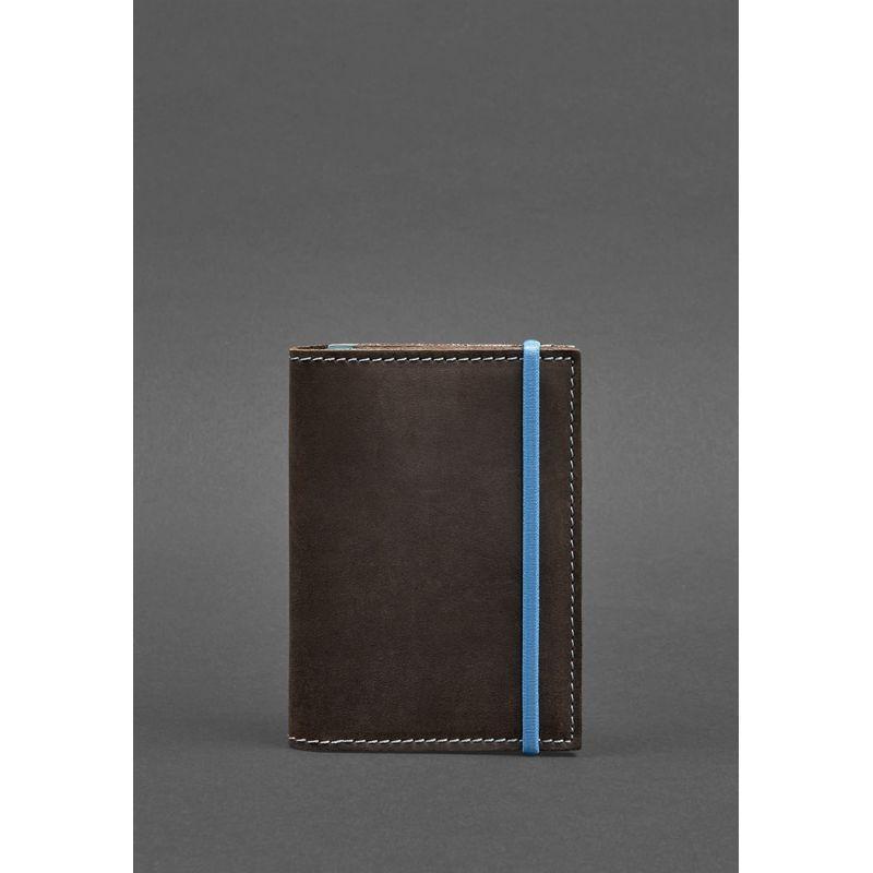 Кожаная обложка для паспорта 2.0 темно-коричневый crazy horse с бирюзовым