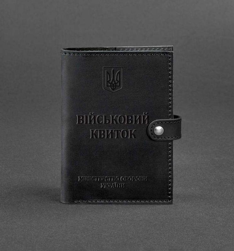 Шкіряна обкладинка-портмоне для військового квитка чорна crazy horse