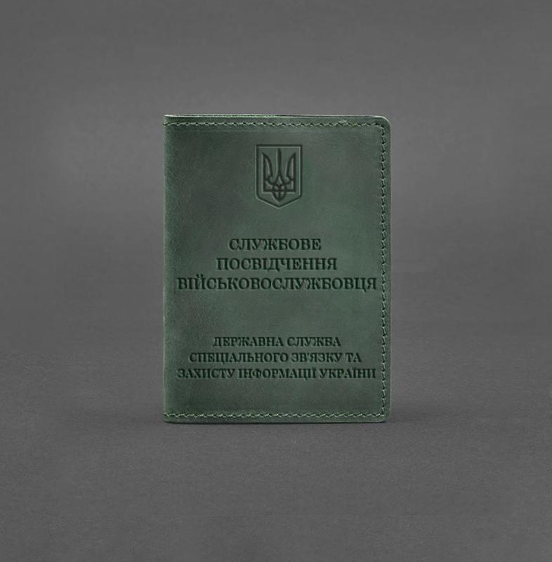 Кожаная обложка для служебного удостоверения военнослужащего госспецсвязи зеленая crazy ho...