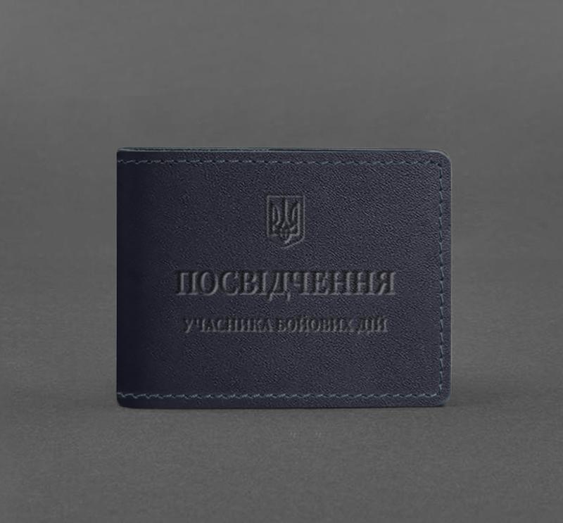 Кожаная обложка для удостоверения участника боевых действий (убд) темно-синяя