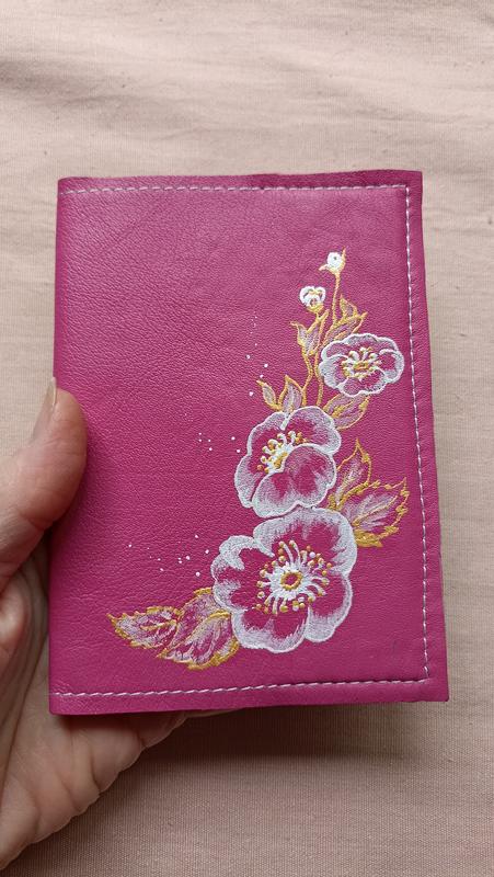 Обложки кожаные, с авторскими рисунками, выполненными вручную специальными акриловыми текстильными красками. Кожа тонкая, приятная на ощупь.