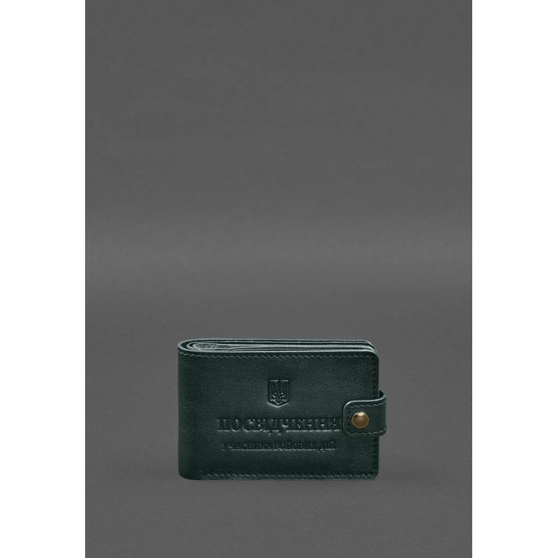Кожаная обложка-портмоне для удостоверения участника боевых действий (убд) зеленая