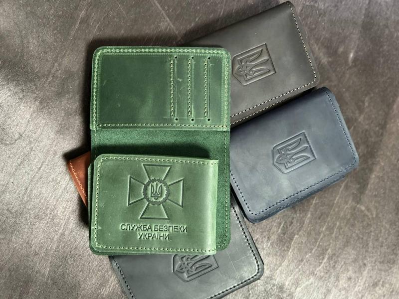 Обложка на удостоверение сбу с отделом для карт и денег. кожаная обложка на сбу