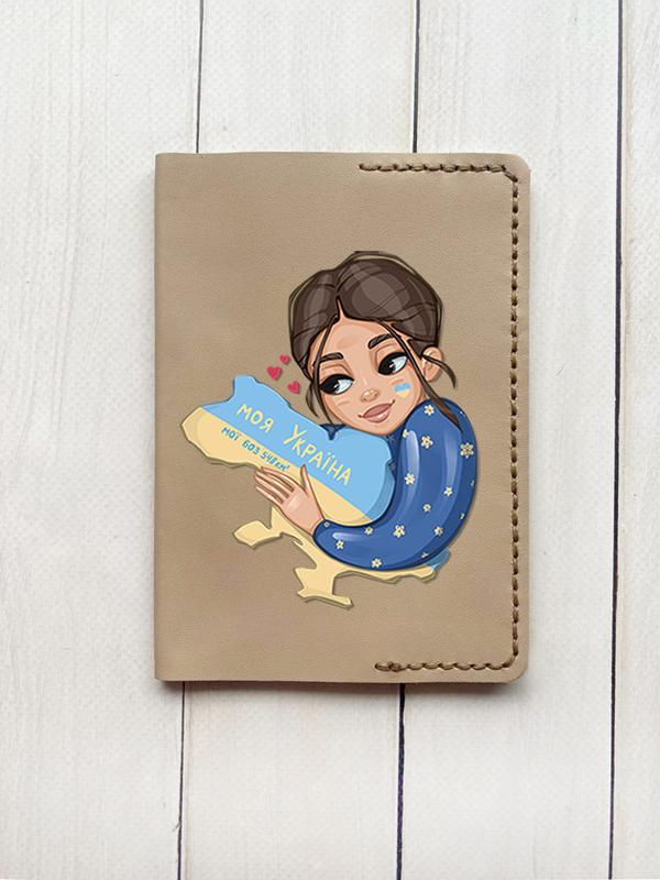 Кожаная обложка ручной работы. Приятная на ощупь. Качественный материал. Принт выполнен УФ-красками: не выгорает на солнце, стойкий к истиранию. Ваш паспорт надёжно защищен. - Материал: натуральная кожа. - Цвет: бежевый. - Размер: 200х138 мм. - Сделано в Украине.