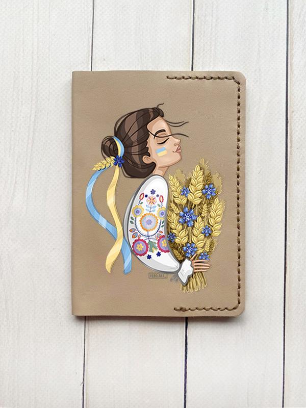 Кожаная обложка ручной работы. Приятная на ощупь. Качественный материал. Принт выполнен УФ-красками: не выгорает на солнце, стойкий к истиранию. Ваш паспорт надёжно защищен. - Материал: натуральная кожа. - Цвет: бежевый. - Размер: 200х138 мм. - Сделано в Украине.