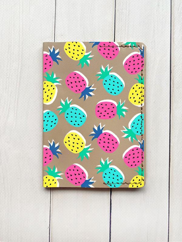 Кожаная обложка на паспорт книжку :: бежевая (принт 346)