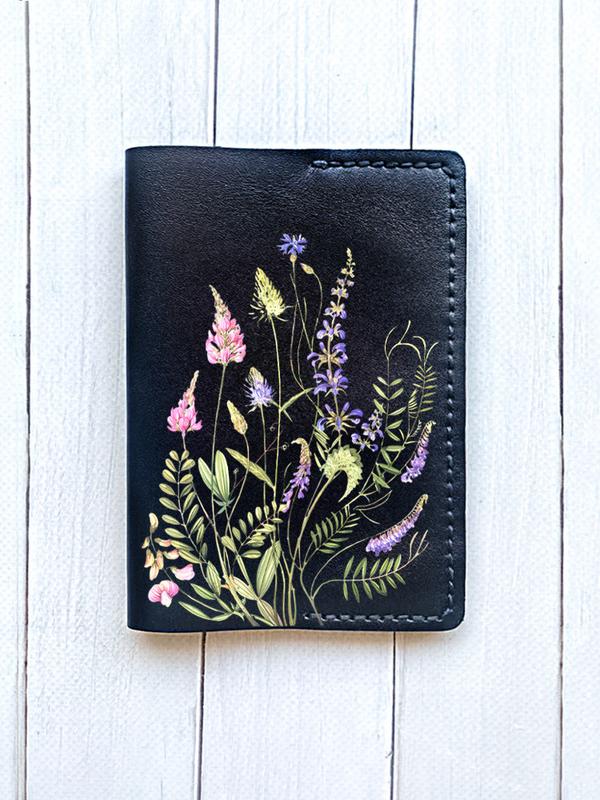 Кожаная обложка на паспорт книжку :: чёрная (принт 382)