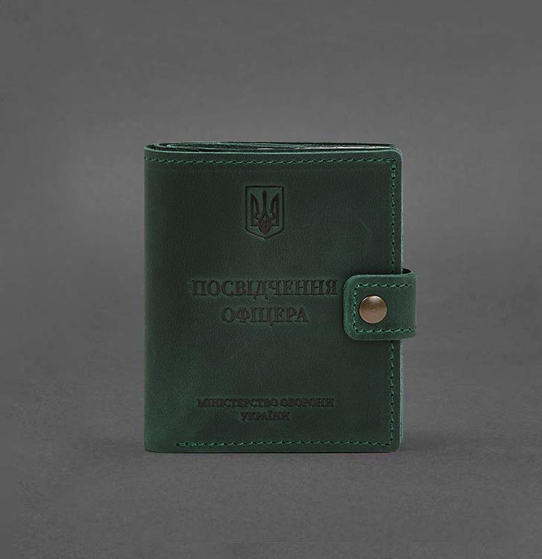 Кожаная обложка-портмоне для удостоверения офицера зеленая crazy horse 11.1