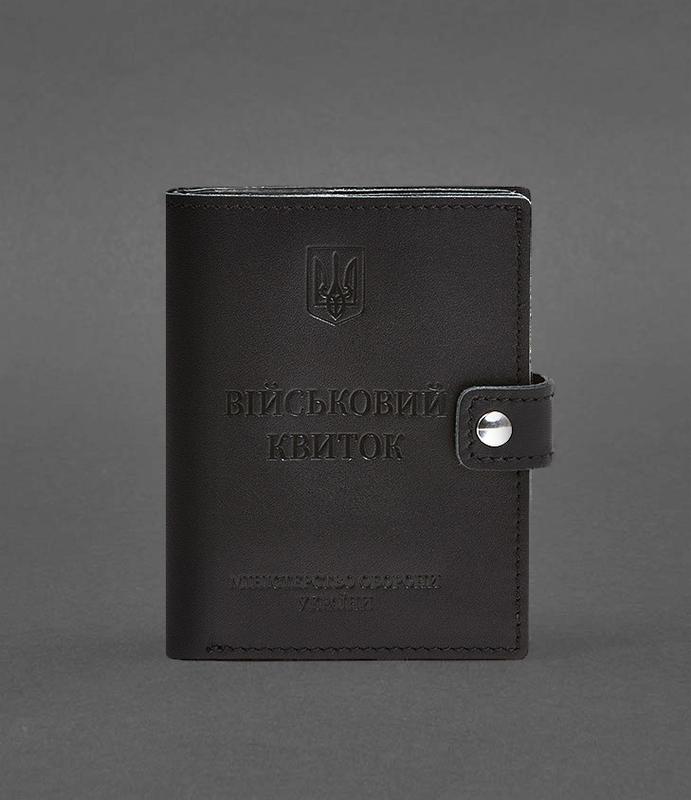Кожаная обложка-портмоне для военного билета с карманом для жетона черная 15.1