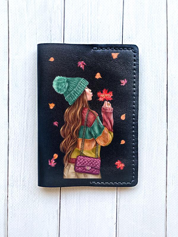 Кожаная обложка на паспорт книжку :: чёрная (принт 221)