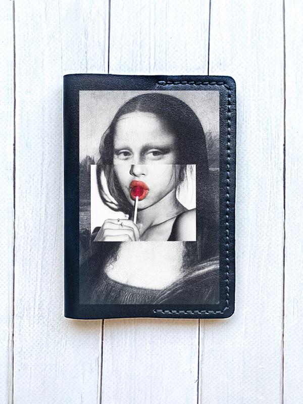 Кожаная обложка на паспорт книжку :: чёрная (принт 351)