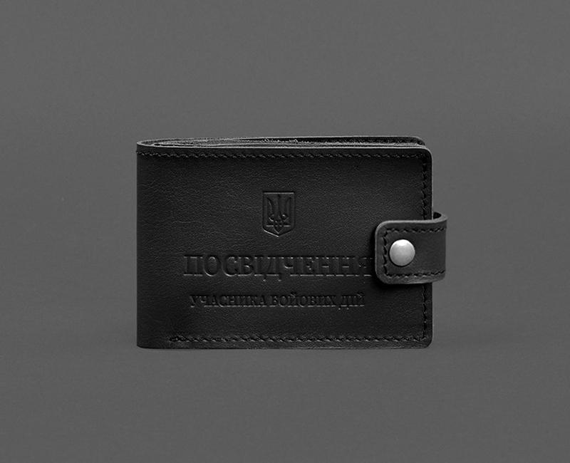 Кожаная обложка-портмоне для удостоверения убд картонный документ черная 23.1
