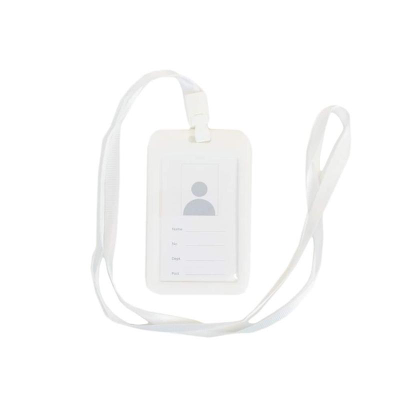 Бейдж на шнурку, вертикальний, колір білий – atis, 111 x 69 x 5 мм
