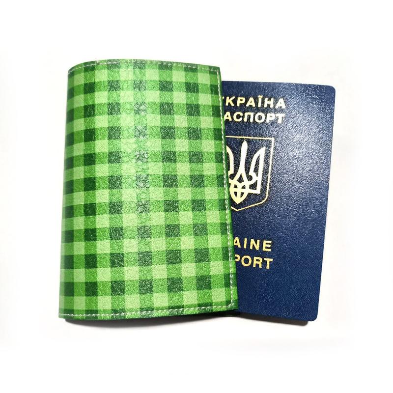 Обложка на паспорт принт шахматный узор салатовый (ob_0017)