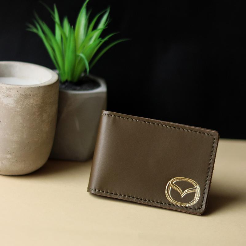 Обкладинка для автодокументів з логотипом "mazda" олива з позолотою