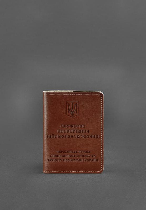 Шкіряна обкладинка для службового посвідчення військовослужбовця держспецзв'язку світло-ко...