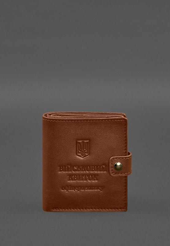 Шкіряна обкладинка-портмоне для військового квитка офіцера запасу (широкий документ) світл...