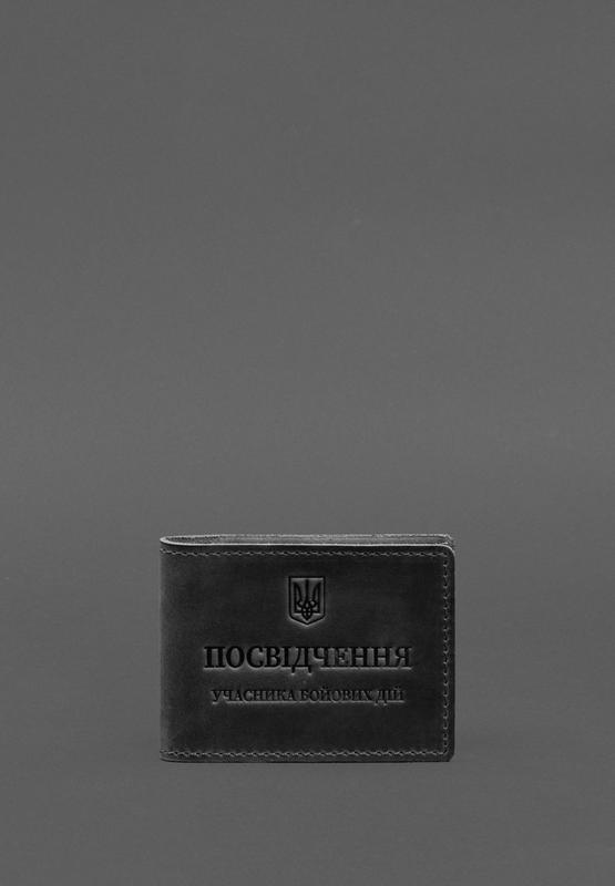 Шкіряна обкладинка для посвідчення учасника бойових дій із кишенею для жетону чорна crazy...