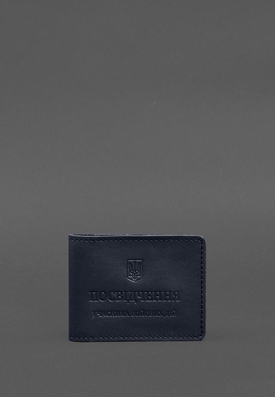 Шкіряна обкладинка для посвідчення учасника бойових дій (убд) із кишенею для жетону темно-...