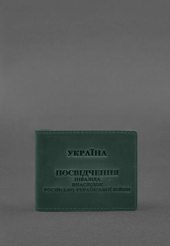 Шкіряна обкладинка для посвідчення інваліда через російсько-українську війну зелений crazy...