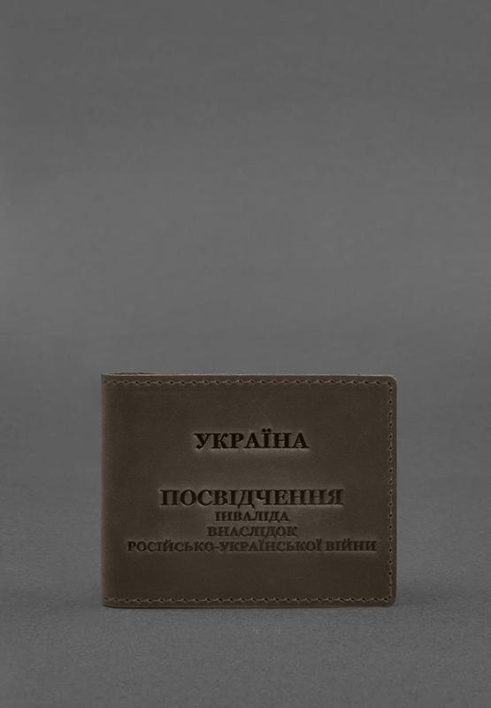 Шкіряна обкладинка для посвідчення інваліда внаслідок російсько-української війни темно-ко...