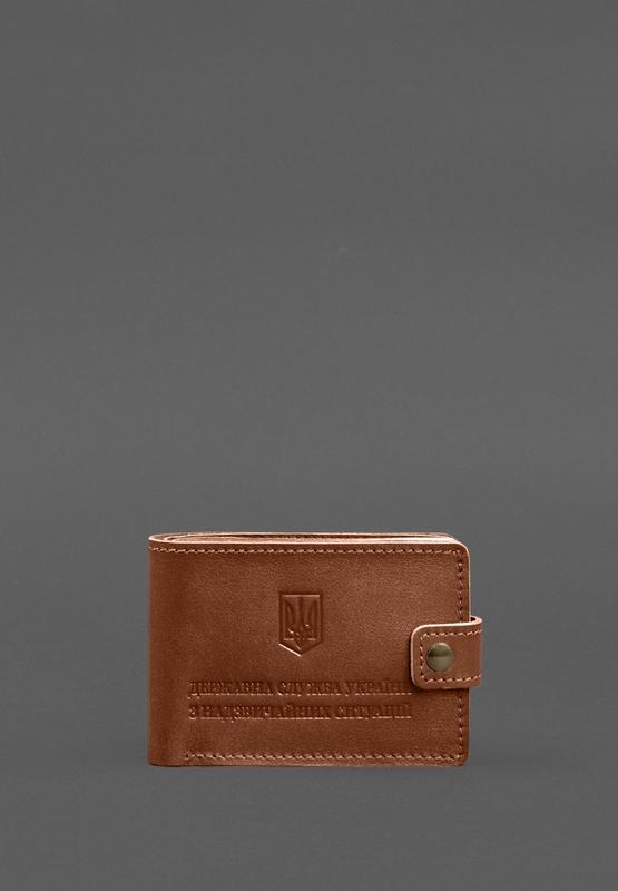 Шкіряна обкладинка-портмоне на посвідчення дснс світло-коричнева