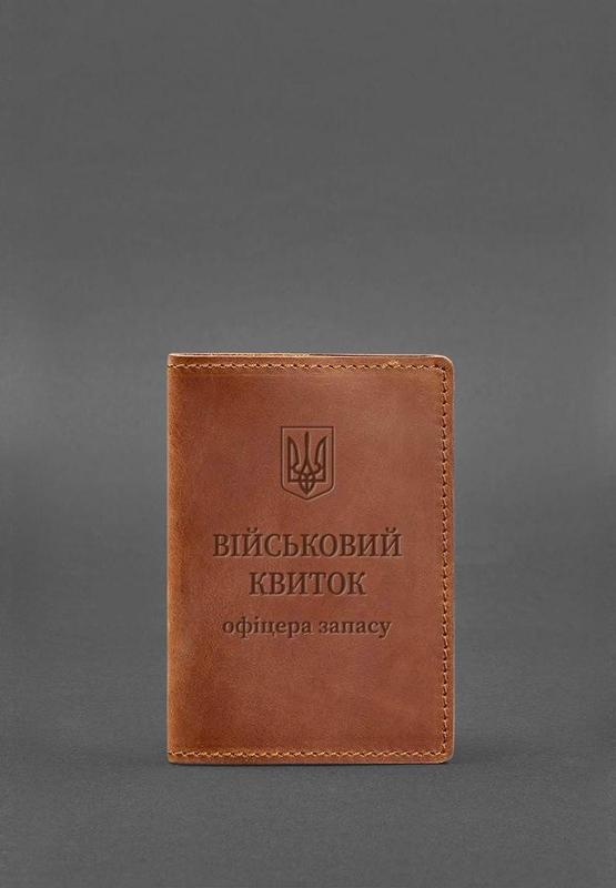 Шкіряна обкладинка для військового квитка офіцера запасу 8.0 світло-коричнева crazy horse