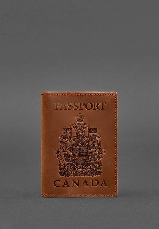 Шкіряна обкладинка для паспорта з канадським гербом світло-коричнева crazy horse