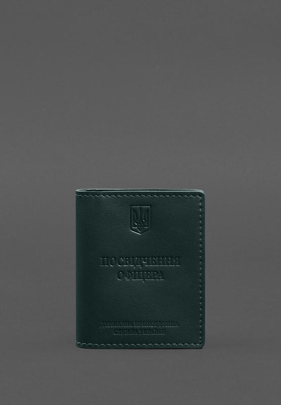 Шкіряна обкладинка для посвідчення офіцера дпсу (три кишені) зелена