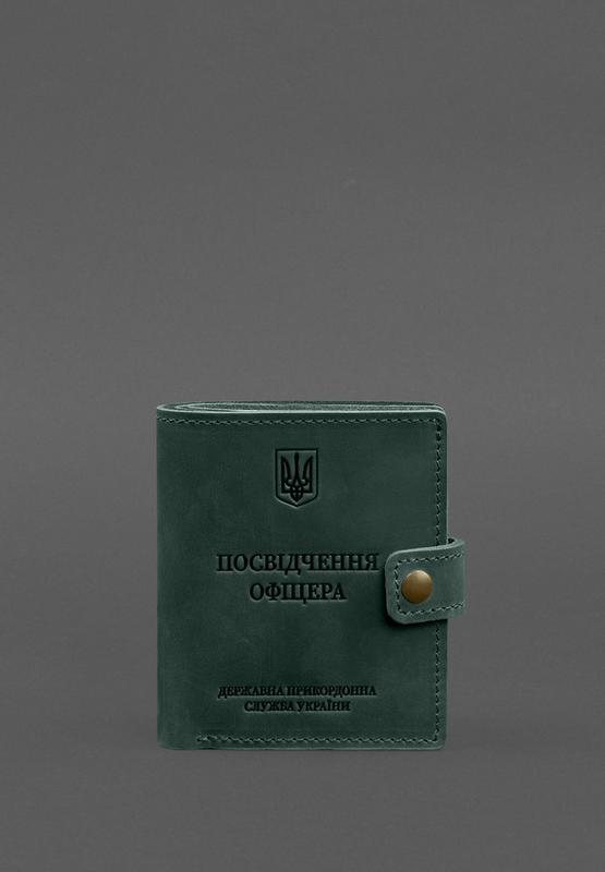 Шкіряна обкладинка-портмоне для посвідчення офіцера дпсу 11.2 зелена crazy horse