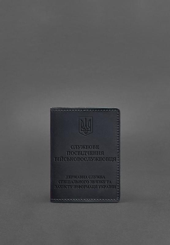 Шкіряна обкладинка для службового посвідчення військовослужбовця держспецзв'язку темно-син...