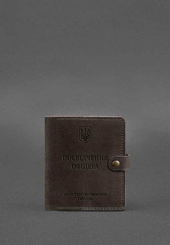 Шкіряна обкладинка-портмоне на Посвідчення офіцера від бренду БланкНот спеціально розроблена для дбайливого зберігання вашого документа. Пошита з високоякісної натуральної шкіри crazy horse. Ця шкіра з вінтажним ефектом дуже міцна і довговічна. Тиснення на лицьовій стороні обкладинки повністю дублює оригінальний бланк документа. Вгорі розташований герб України, посередині міститься напис «Посвідчення офіцера» Всередині є 1 відділення для купюр, 3 слоти для пластикових карт, прозора кишеня та відділення для документа. Закривається портмоне-обкладинка хлястиком з кнопкою. Чому варто купити Темно-коричневу шкіряну обкладинку-портмоне на Посвідчення офіцера (BN-OP-11-o) від BlankNote? Якісна натуральна шкіра Чітке і гарне тиснення Ручна робота Гарантія 3 роки Наші майстри можуть виготовити обкладинку в будь-якому іншому кольорі. Також виріб можна персоналізувати. Зверніть увагу на наші вироби з українською символікою. Рекомендуємо обкладинки для паспорта з гербом України. Гарантія на обкладинку-портмоне - 3 роки з моменту покупки. УВАГА! Вироблення даної шкіри передбачає природне появлення на ній подряпин і потертостей в ході використання! Від цього виріб стає більш індивідуальним і приємним, це оцінять справжні шанувальники вінтажного стилю :) А так же перший час шкіра може фарбуватися при сильному терті об інші предмети - це особливість її вичинки, поступово цей ефект зменшується, шкіра полірується і набуває трохи глянсовий ефект. Фурнітура та комплектація може бути змінена виробником