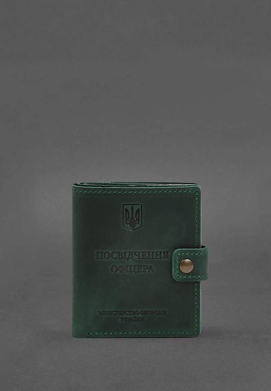 Шкіряна обкладинка-портмоне для посвідчення офіцера з кишенею для жетона 11.1 зелена crazy...