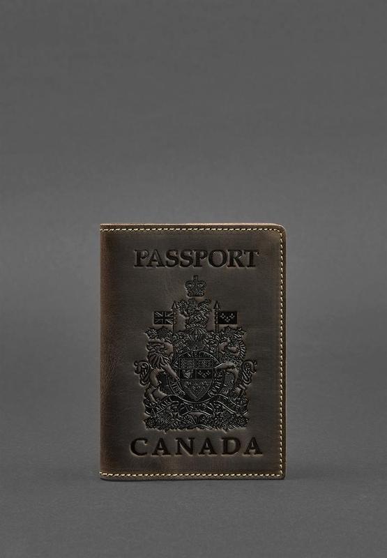 Шкіряна обкладинка для паспорта з канадським гербом темно-коричнева crazy horse