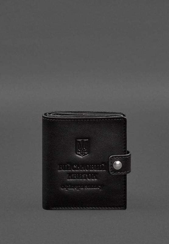 Шкіряна обкладинка-портмоне для військового квитка офіцера запасу (широкий документ) чорна