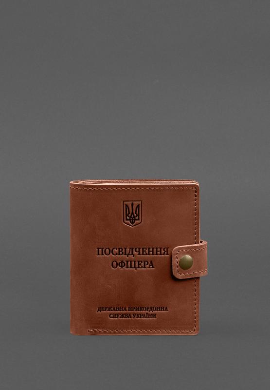 Шкіряна обкладинка-портмоне для посвідчення офіцера дпсу 11.2 світло-коричнева crazy horse