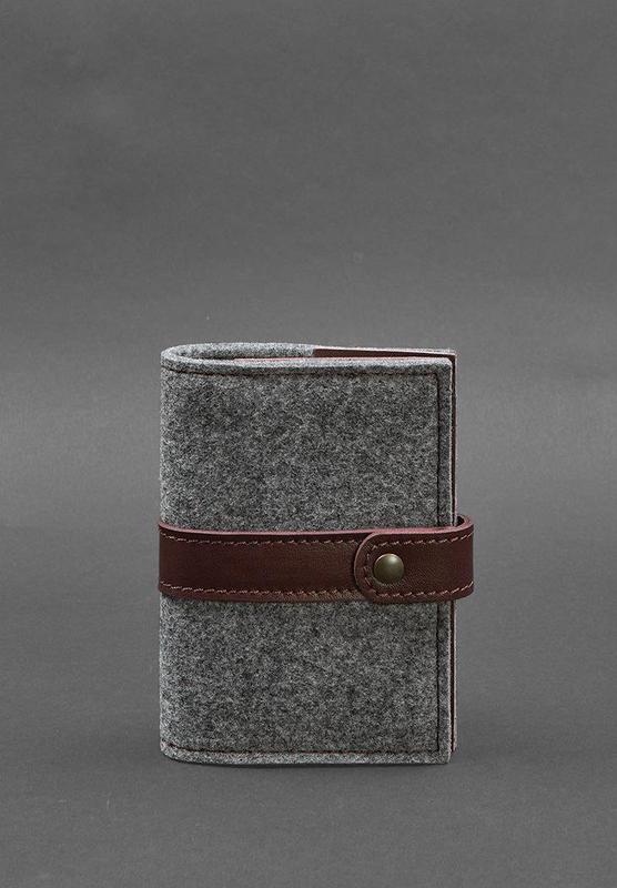 Фетрова обкладинка для паспорта 1.1 з шкіряними бордовими вставками