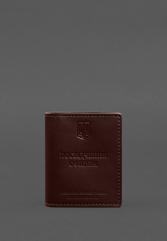 Шкіряна обкладинка для посвідчення офіцера дпсу (три кишені) бордова