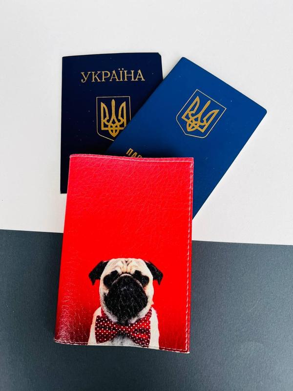 Обложка на паспорт - книжку кожа , загранпаспорт, загран паспорт венный билет мопс собака