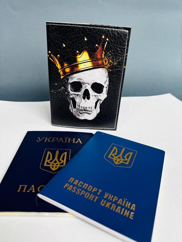 Обложка на паспорт - книжку кожа , загранпаспорт, загран паспорт венный билет череп