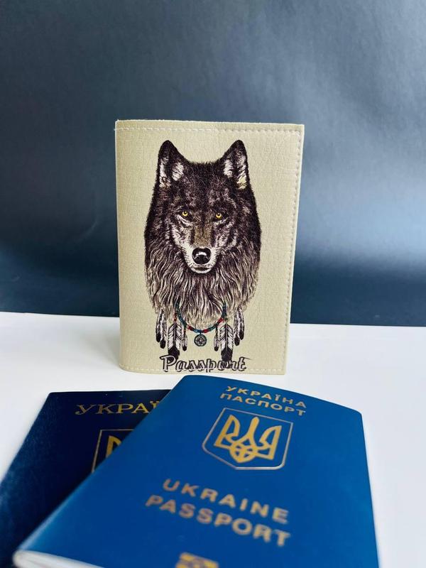 Обложка на паспорт - книжку кожа , загранпаспорт, загран паспорт венный билет волк