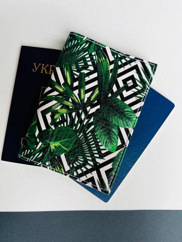 Обложка на паспорт - книжку кожа , загранпаспорт, загран паспорт венный билетлистья пальмы