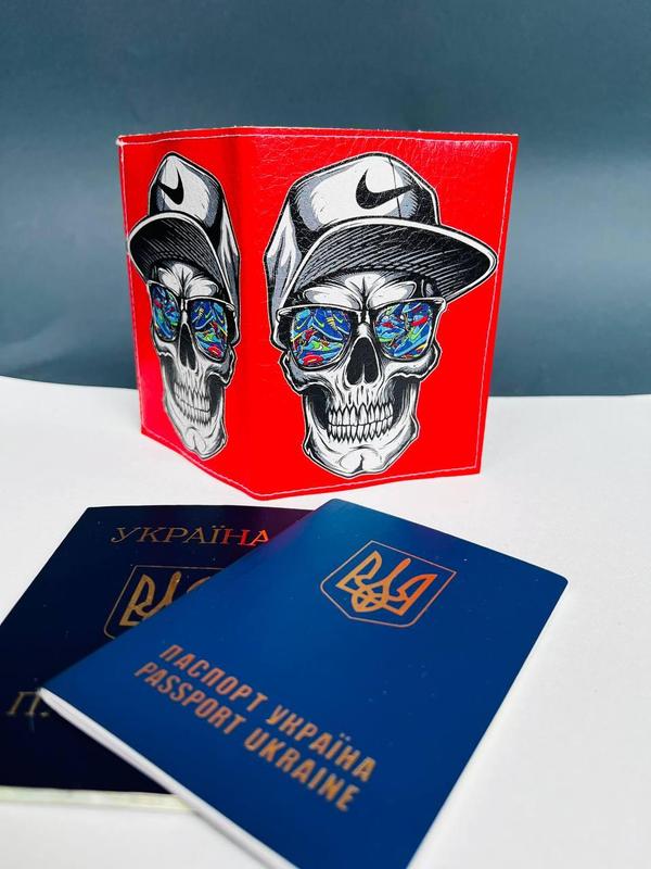 Обложка на паспорт - книжку кожа , загранпаспорт, загран паспорт венный билет череп